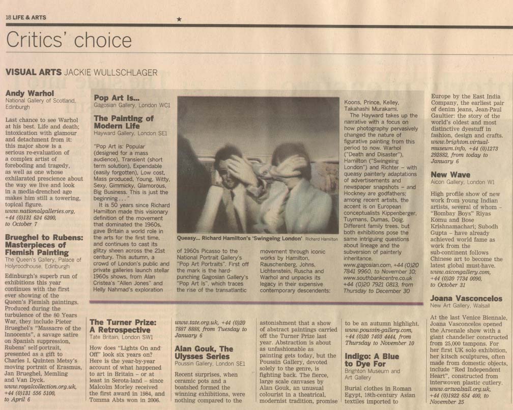 London Galleries to Watch Evening StandardJanuary 18, 2008