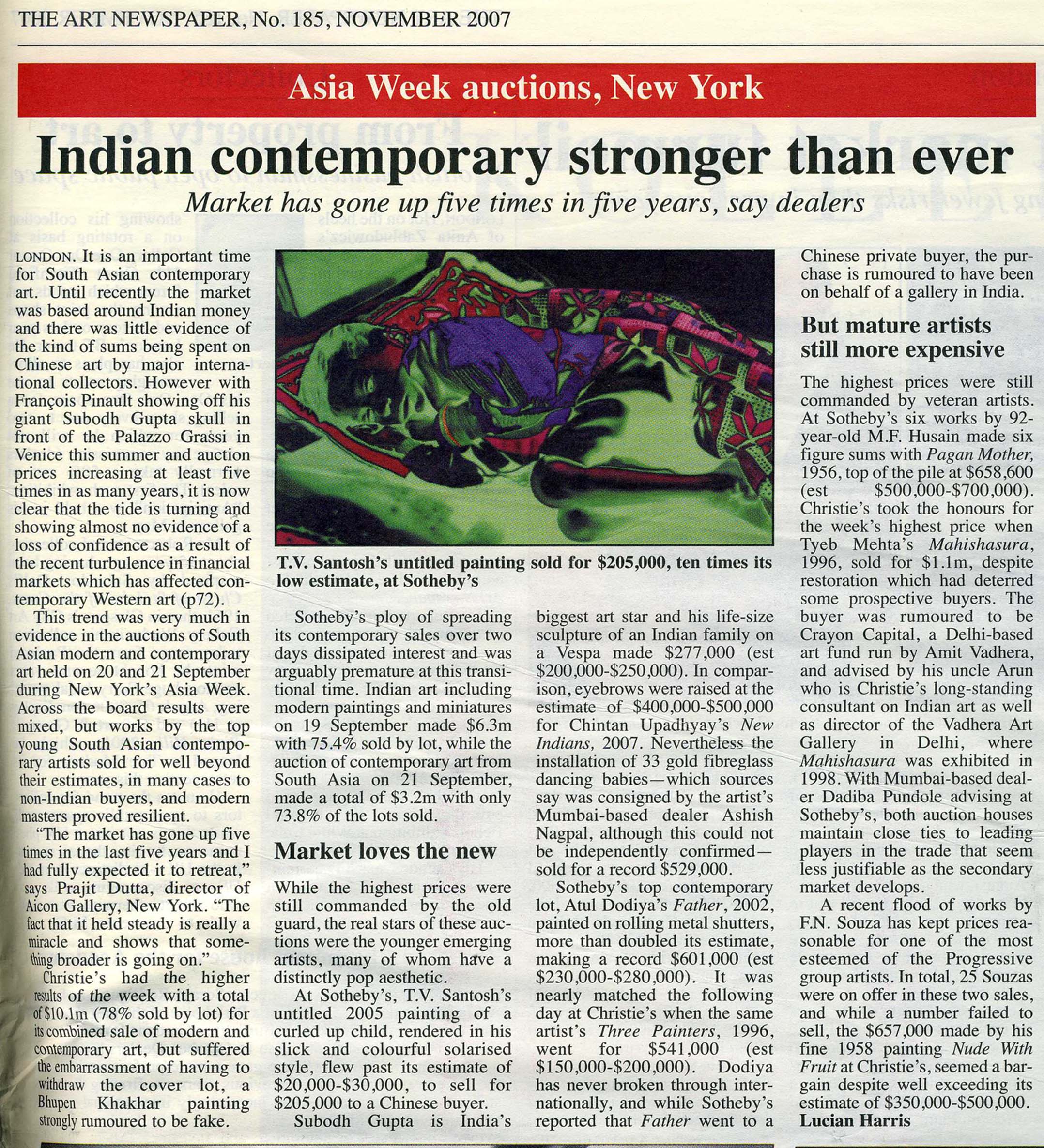 Indian Contemporary Art Stronger Than Ever The Art NewspaperNovember 1, 2007